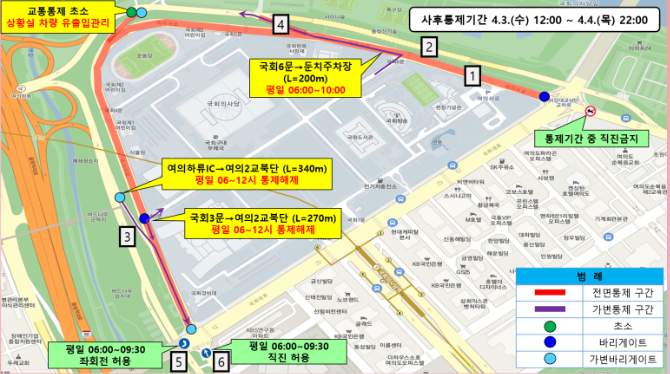 2024년 3월 29일 (금) 12:00부터 4월 2일 (화) 12:00까지 (24시간 통제) - 구간: